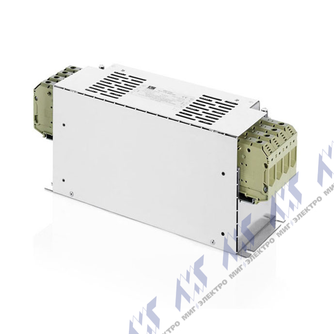 Трехфазный помехоподавляющий фильтр ЭМС для снижения влияния помех на работу электронных устройств, для сетей с нейтралью (3P + N), номинальное напряжение 520 В, номинальный ток 130 A, ток утечки 19-37 мА, IP20