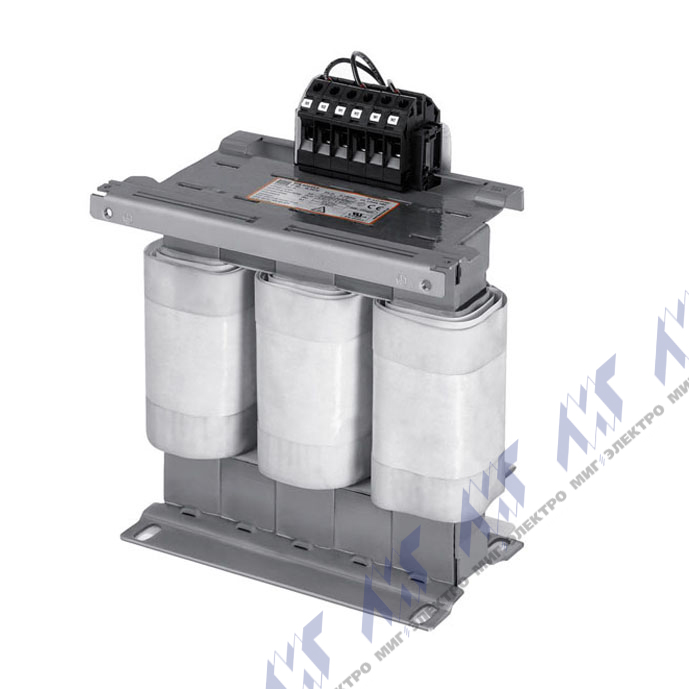 Синус-фильтр SFB, защищает от скачков напряжения и перенапряжений du/dt, значительно увеличивает допустимую длину кабеля между двигателем и ПЧ, для частот коммутации от 4 до 8 кГц, номинальное напряжение 400 В, номинальный ток 180 A, номинальная частота от 0 до 150 Гц, IP00