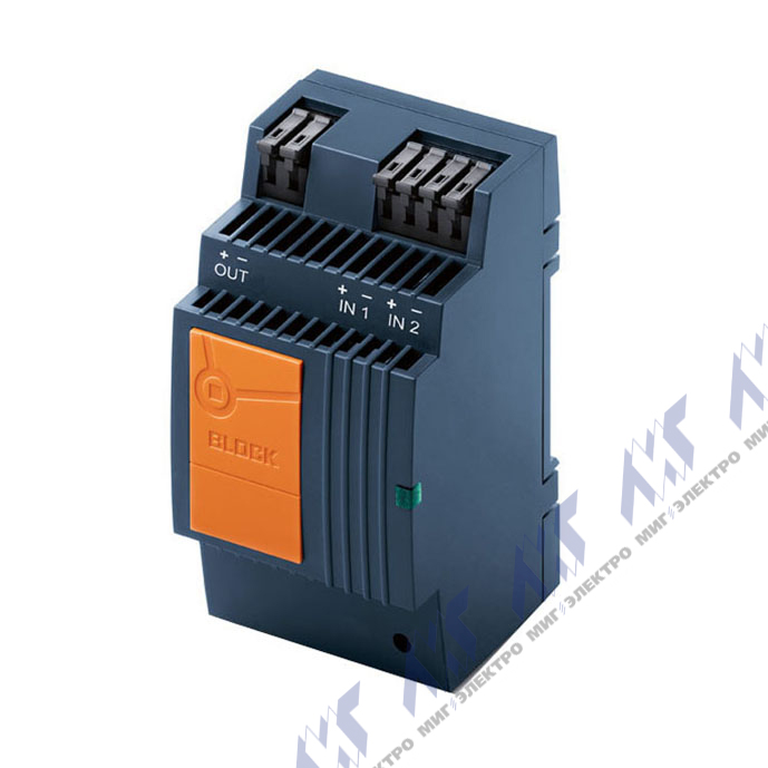 Модуль с резервированием для разъединения двух устройств электропитания при создании безотказной системы энергоснабжения, входное напряжение 24 В DC, выходное напряжение 24 В DC, входной ток: 2x5 A или 1x10 A, выходной ток 10 А, LED-индикация зеленого цвета, пружинные клеммы, монтаж на DIN-рейку, IP20