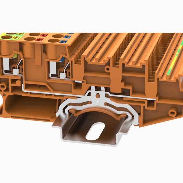 Клемма для датчиков 3-проводная с заземлением пружинная Push-in 1,5мм2, оранжевая, ширина 7мм, номинальный ток 20А
