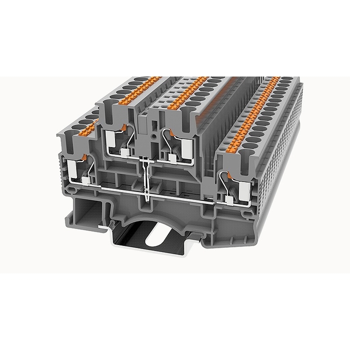 Клемма пружинная двухуровневая с общим потенциалом, Push-in, Сечение: 0,14 кв. мм - 2,5 кв. мм, Ном. Ток: 24А, Ширина: 5,2 мм, Цвет: серый, Тип монтажа: NS 35