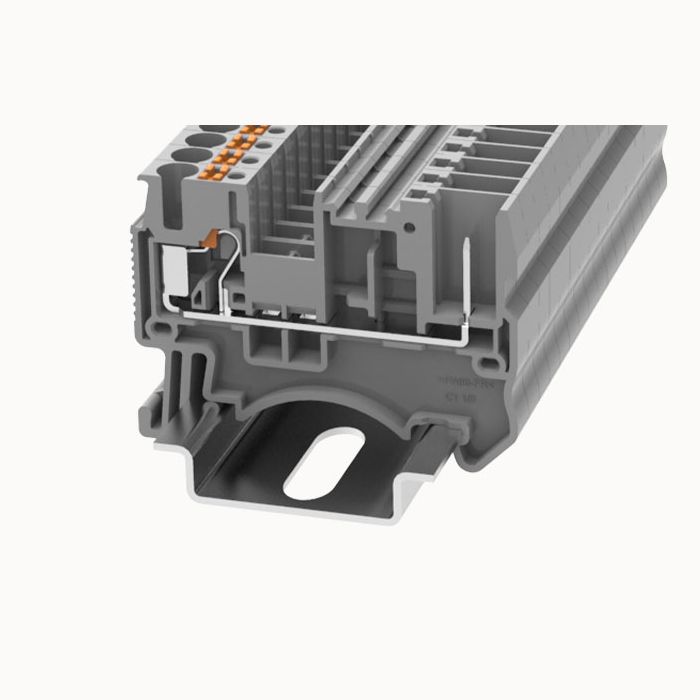 Клемма проходная пружинная Push-in, штекерная, Сечение: 0,14 кв. мм - 2,5 кв. мм, Ном. Ток: 24А, Ширина: 5,2 мм, Цвет: серый, Тип монтажа: NS 35