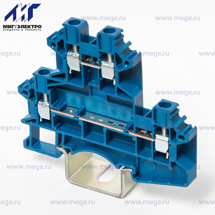 Клемма винтовая двухуровневая 4мм2 синяя ширина 5,1мм, номинальный ток 32А