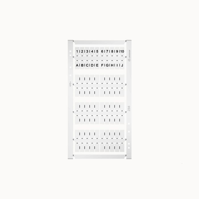 Маркировочные пластины для клемм шириной 6,2мм, пустые, кол-во маркировочных полей: 80, размер маркировочного поля: 5,6х10,5мм, печать: принтер PTT, установка: глубокий паз.