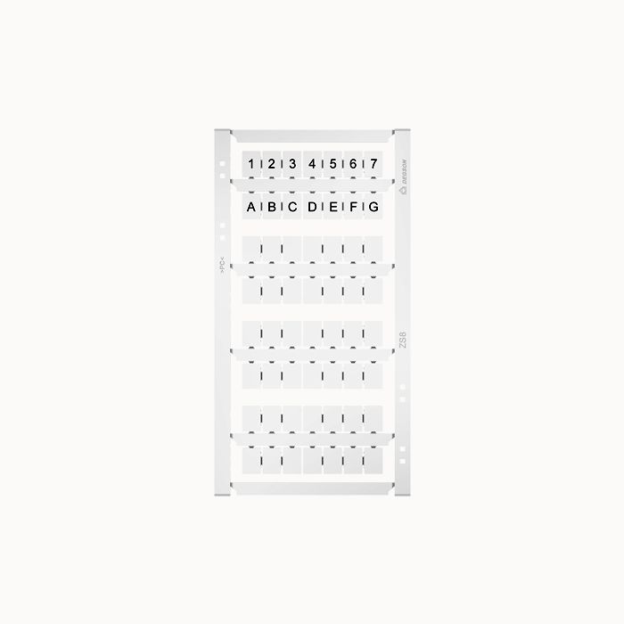 Маркировочные пластины для клемм шириной 8,2мм, пустые, кол-во маркировочных полей: 56, размер маркировочного поля: 7,6х10,5мм, печать: принтер PTT, установка: глубокий паз.