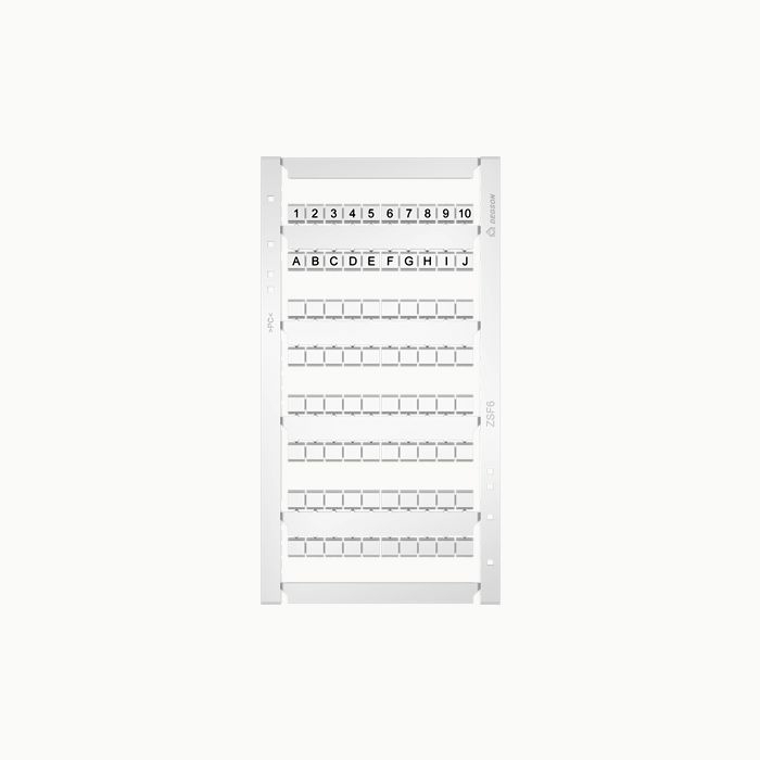 Маркировочные пластины для клемм шириной 8,2мм, надписи в соответствии с требованиями заказчика, кол-во маркировочных полей: 56, размер маркировочного поля: 7,6х6,4мм, печать: принтер PTT, установка: плоский паз.