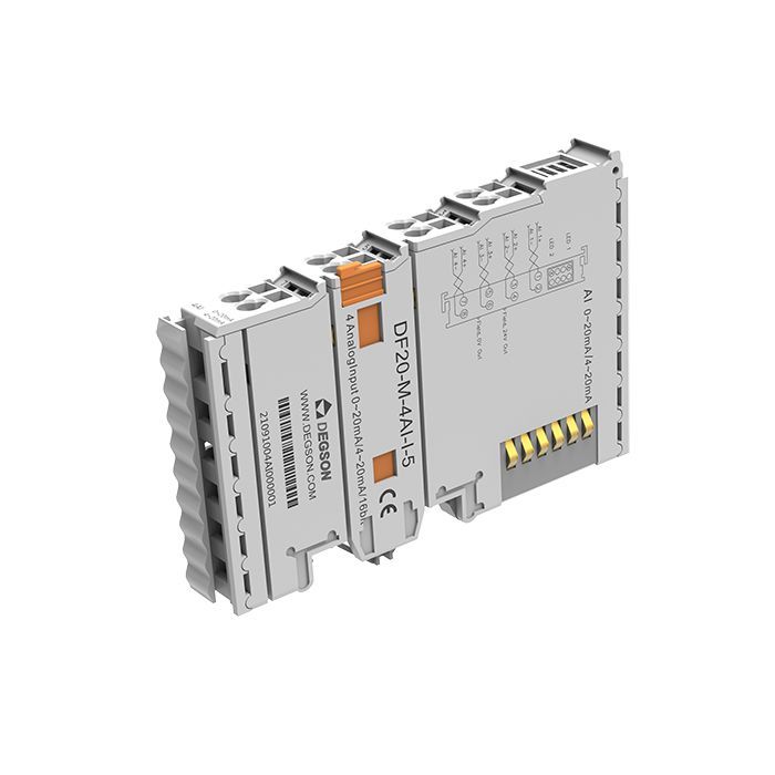 Модуль ввода аналоговых сигналов. 4 аналоговых входа (4 AI), тип сигнала 0-20 мА/4-20мА, разрешение 16 бит. Производитель - Degson, серия DF20.