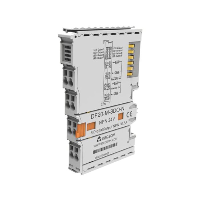 Модуль ввода дискретных сигналов. 8 дискретных входов (8DI), тип NPN, напряжение питания 24В (DC). Производитель - Degson, серия DF20.