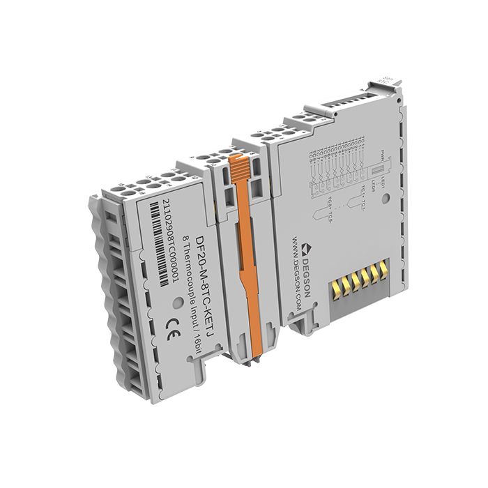 Модуль аналогового ввода термосопротивления. 4 аналоговых входа (4 AI TC), тип термопары K/E/ T/J/B/S/R/N/L/, разрешение 16 бит. Производитель - Degson, серия DF20.