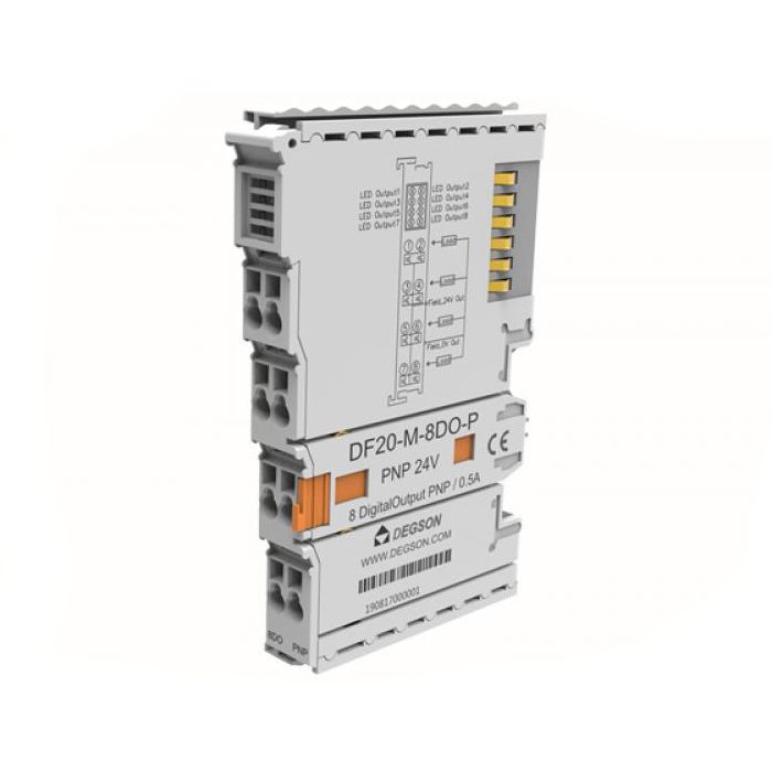 Модуль вывода дискретных сигналов. 8 дискретных выходов (8DO), тип PNP,напряжение питания 24В (DC). Производитель - Degson, серия DF20.