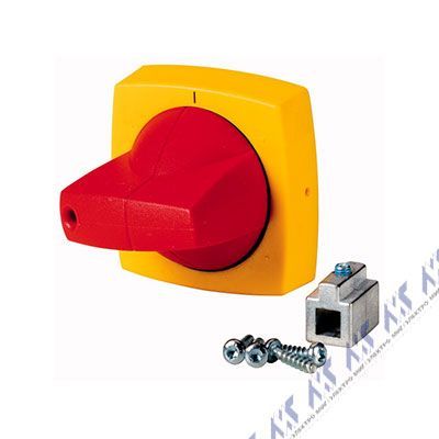 Рукоять С-типа, монтаж на панель, под ось 6х6, красно-желтая