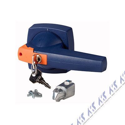 Рукоять D-типа с цилиндрическим замком, монтаж на дверь, под ось 8х8, синяя