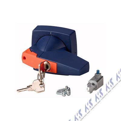 Рукоять D-типа с цилиндрическим замком, монтаж на дверь, под ось 6х6, синяя