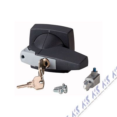 Рукоять D-типа с цилиндрическим замком, монтаж на дверь, под ось 6х6, серая