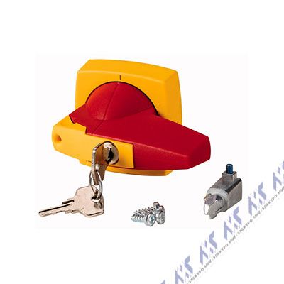 Рукоять D-типа с цилиндрическим замком, монтаж на дверь, под ось 6х6, красная