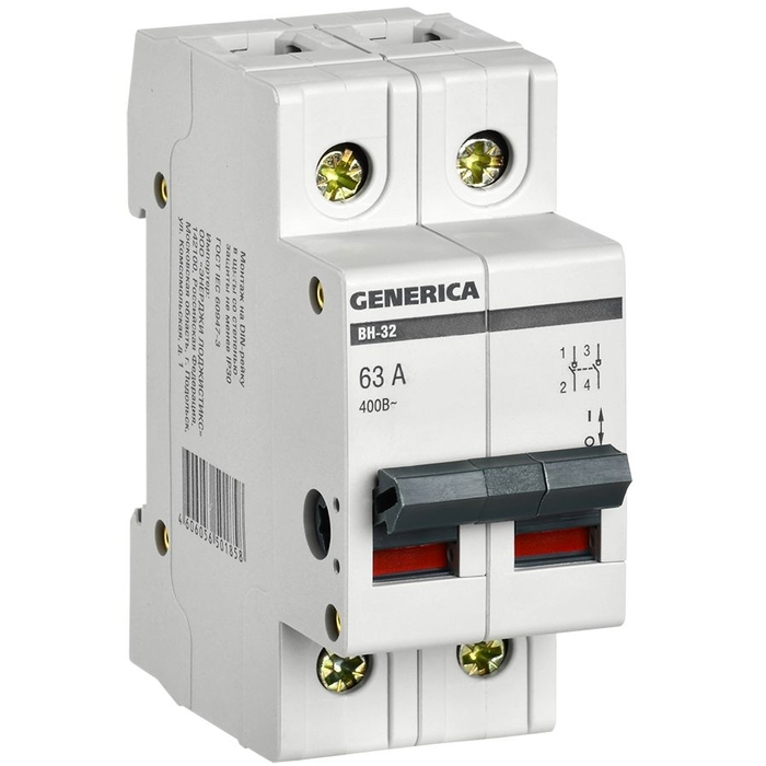 Выключатель нагрузки (мини-рубильник) ВН-32 2Р 63А GENERICA