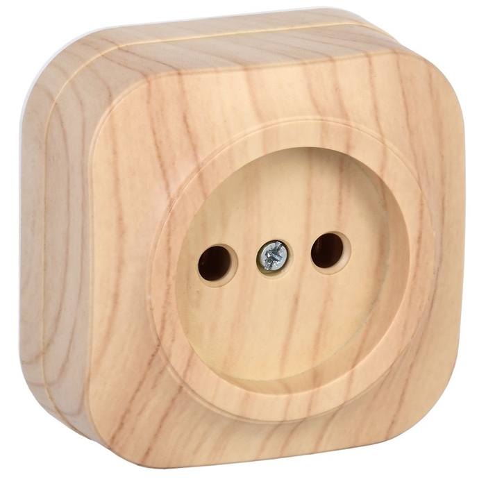 Розетка одноместная для открытой установки РС20-2-ХС без заземления 10А GLORY сосна IEK