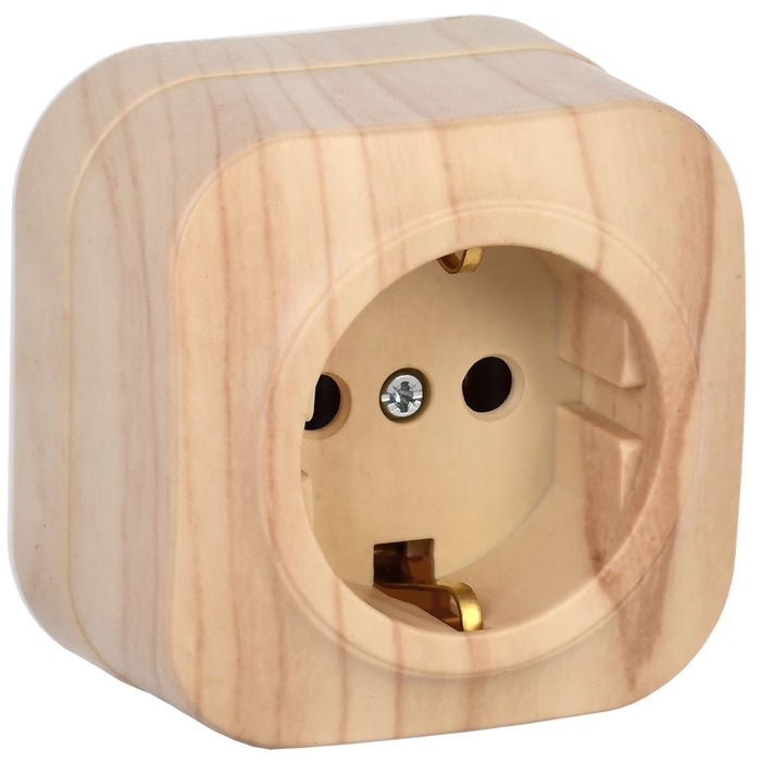Розетка одноместная для открытой установки РС20-3-ХС с заземлением 16А GLORY сосна IEK