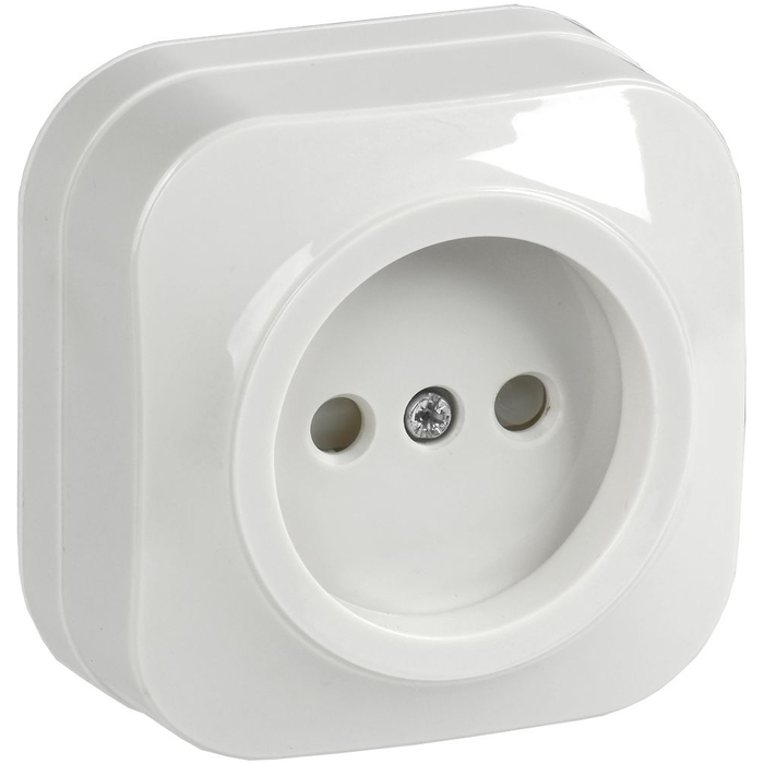 Розетка одноместная для открытой установки РСш20-2-ХБ без заземления с защитной шторкой 10А GLORY белый IEK