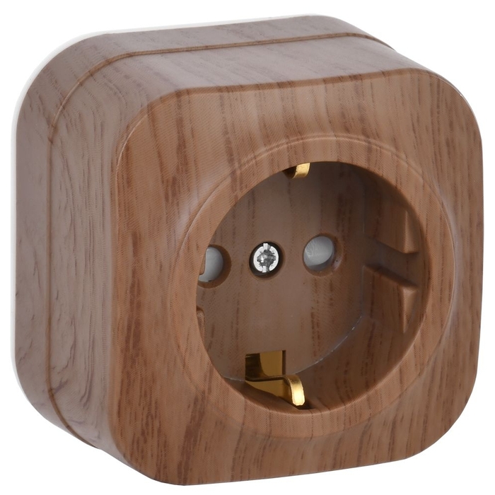 Розетка одноместная для открытой установки РСш20-3-ХД с заземлением и защитной шторкой 16А GLORY дуб IEK