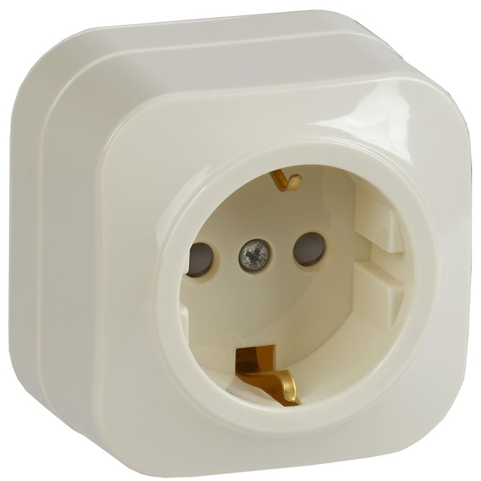 Розетка одноместная для открытой установки РСш20-3-ХК с заземлением и защитной шторкой 16А GLORY кремовый IEK