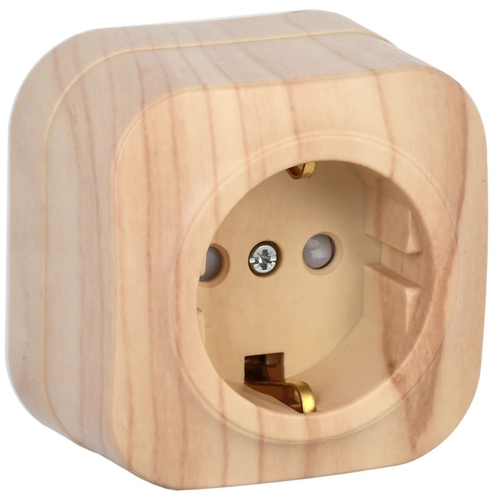 Розетка одноместная для открытой установки РСш20-3-ХС с заземлением и защитной шторкой 16А GLORY сосна IEK