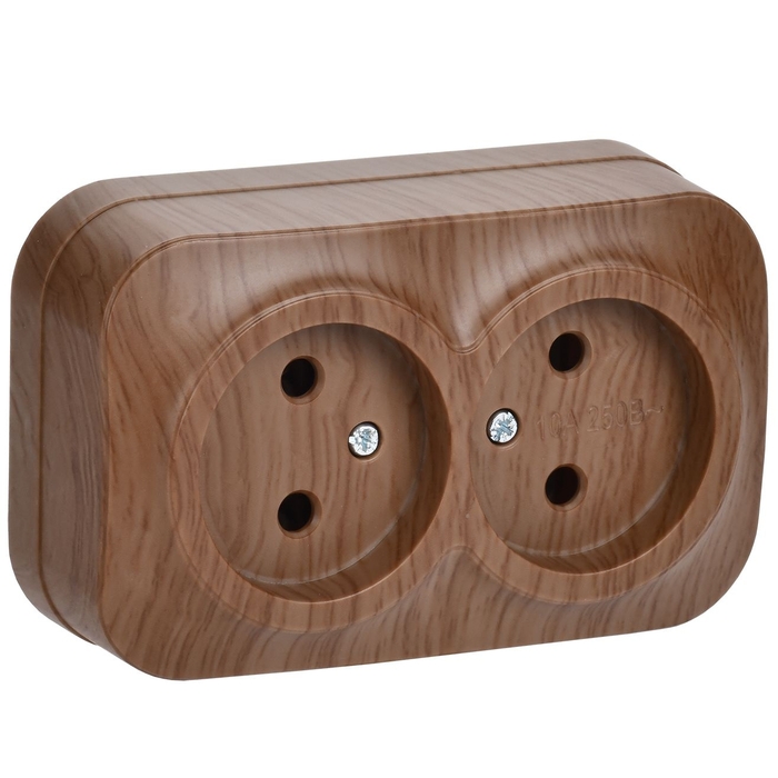 Розетка двухместная для открытой установки РС22-2-ХД без заземления 10А GLORY дуб IEK
