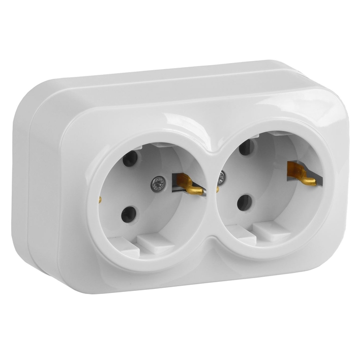 Розетка двухместная для открытой установки РС22-3-ХБ с заземлением 16А GLORY белый IEK