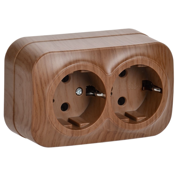 Розетка двухместная для открытой установки РС22-3-ХД с заземлением 16А GLORY дуб IEK