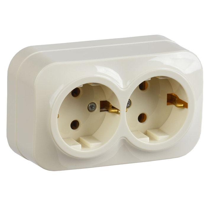 Розетка двухместная для открытой установки РС22-3-ХК с заземлением 16А GLORY кремовый IEK