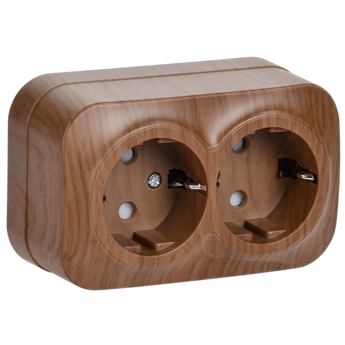 Розетка двухместная для открытой установки РСш22-3-ХД с заземлением и защитной шторкой 16А GLORY дуб IEK