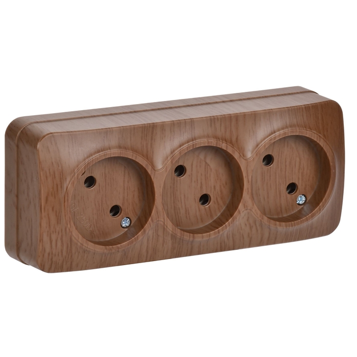 Розетка трехместная для открытой установки РС23-2-ХД без заземления 10А GLORY дуб IEK