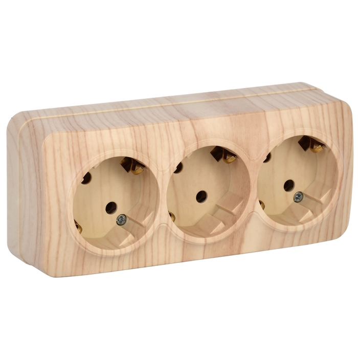 Розетка трехместная для открытой установки РС23-3-ХС с заземлением 16А GLORY сосна IEK