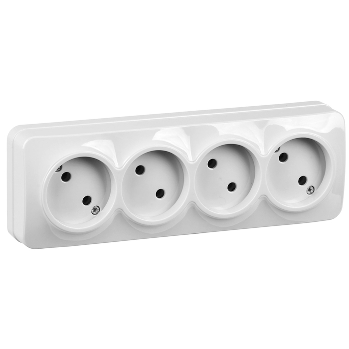 Розетка четырехместная для открытой установки РС24-2-ХБ без заземления 10А GLORY белый IEK