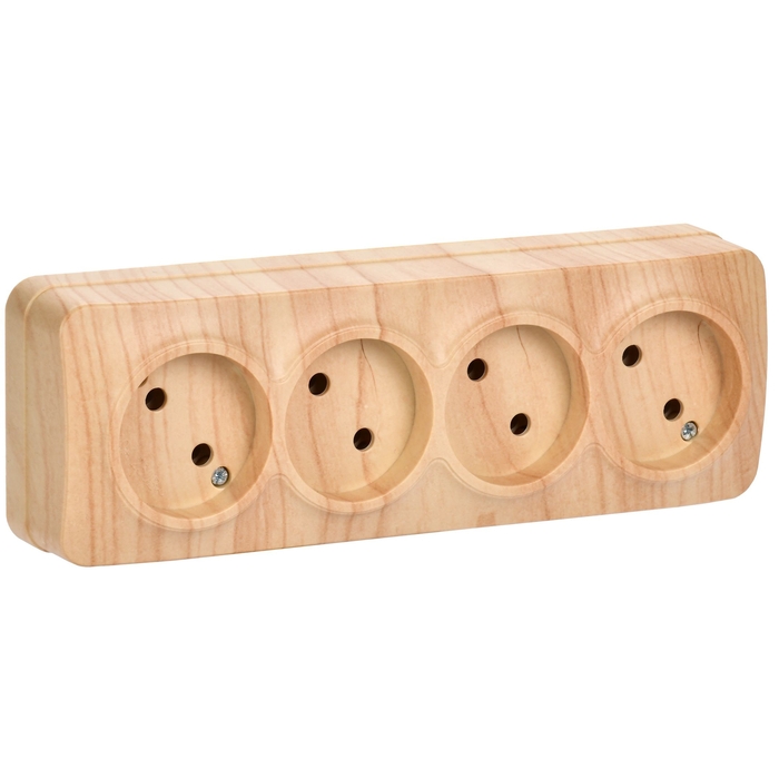 Розетка четырехместная для открытой установки РС24-2-ХС без заземления 10А GLORY сосна IEK
