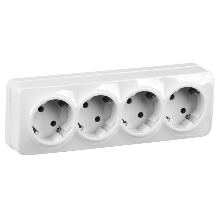 Розетка четырехместная для открытой установки РС24-3-ХБ с заземлением 16А GLORY белый IEK