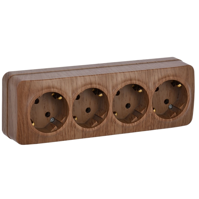 Розетка четырехместная для открытой установки РС24-3-ХД с заземлением 16А GLORY дуб IEK