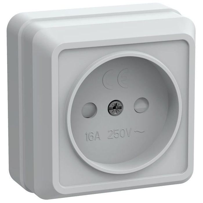 Розетка 1-местная для открытой установки РСш20-2-ОБ без заземляющего контакта с защитной шторкой 10А ОКТАВА белый IEK