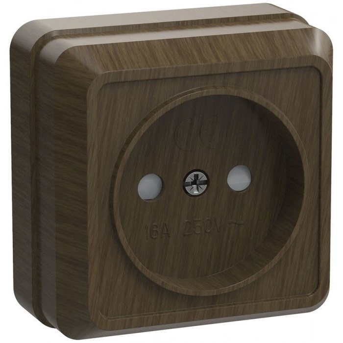 Розетка 1-местная для открытой установки РСш20-2-ОД без заземляющего контакта с защитной шторкой 10А ОКТАВА дуб IEK