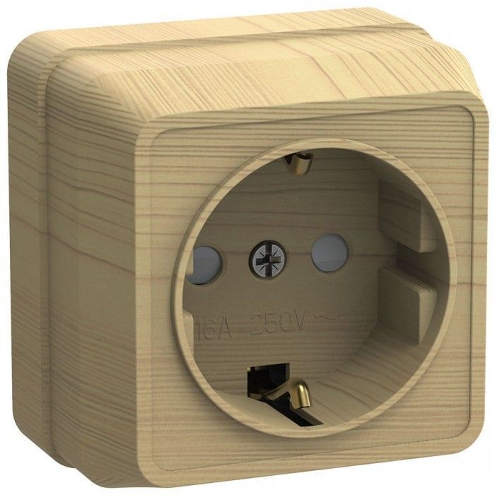 Розетка 1-местная для открытой установки РСш20-3-ОС с заземляющим контактом с защитной шторкой 16А ОКТАВА сосна IEK