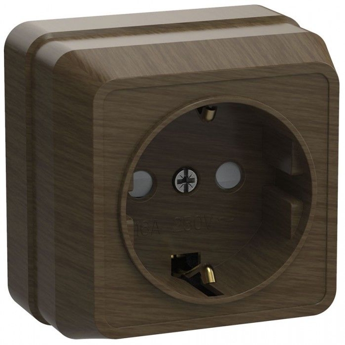 Розетка 1-местная для открытой установки РСш20-3-ОД с заземляющим контактом с защитной шторкой 16А ОКТАВА дуб IEK