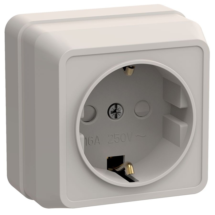 Розетка 1-местная для открытой установки РСш20-3-ОКм с заземляющим контактом с защитной шторкой 16А ОКТАВА кремовый IEK