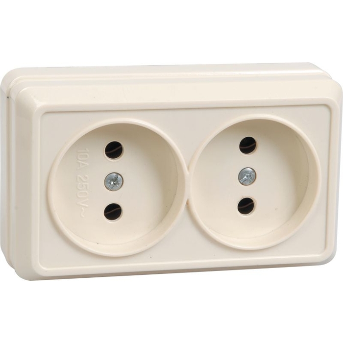 Розетка 2-местная для открытой установки РС22-2-ОКм без заземляющего контакта 10А ОКТАВА кремовый IEK