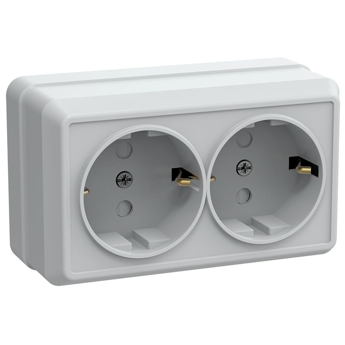 Розетка 2-местная для открытой установки РСш22-3-ОБ с заземляющим контактом с защитной шторкой 16А ОКТАВА белый IEK