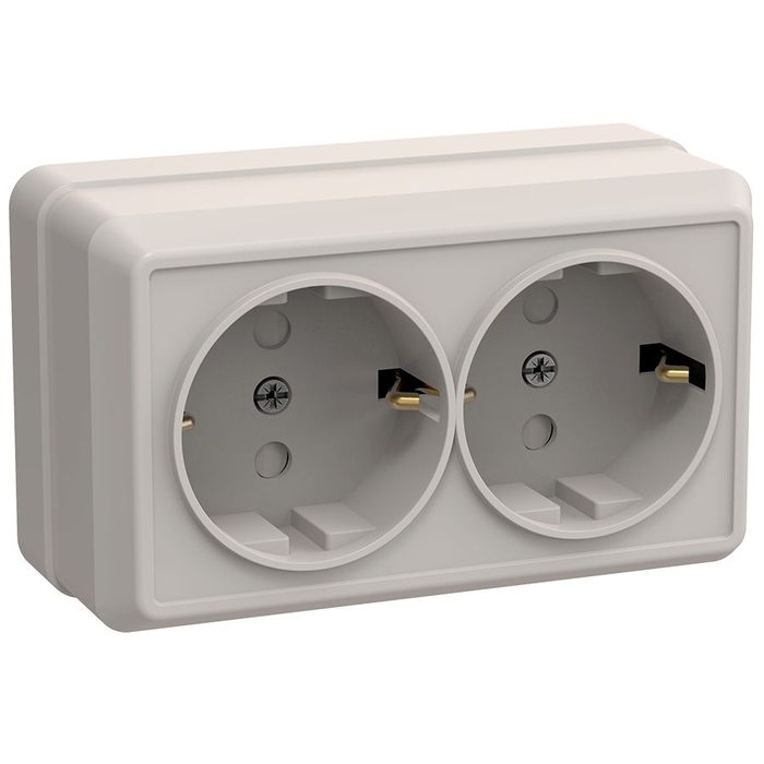 Розетка 2-местная для открытой установки РСш22-3-ОКм с заземляющим контактом с защитной шторкой 16А ОКТАВА кремовый IEK
