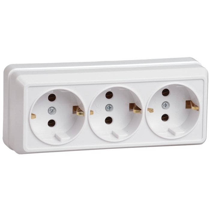 Розетка 3-местная для открытой установки РС23-3-ОБ с заземляющим контактом 16А ОКТАВА белый IEK