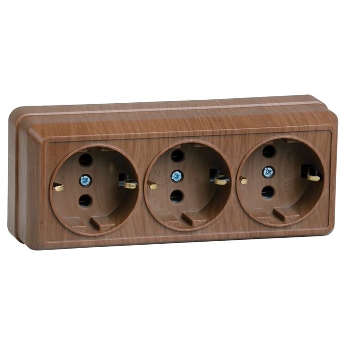 Розетка 3-местная для открытой установки РС23-3-ОД с заземляющим контактом 16А ОКТАВА дуб IEK