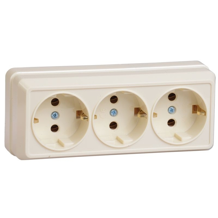 Розетка 3-местная для открытой установки РС23-3-ОК с заземляющим контактом 16А ОКТАВА кремовый IEK