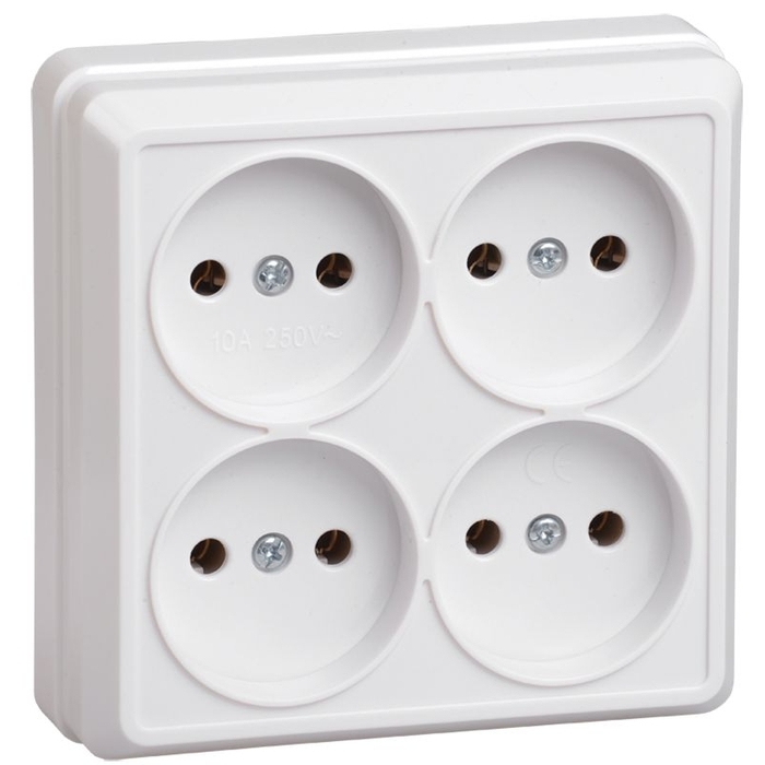 Розетка 4-местная для открытой установки РС24-2-ОБ без заземляющего контакта 10А ОКТАВА белый IEK