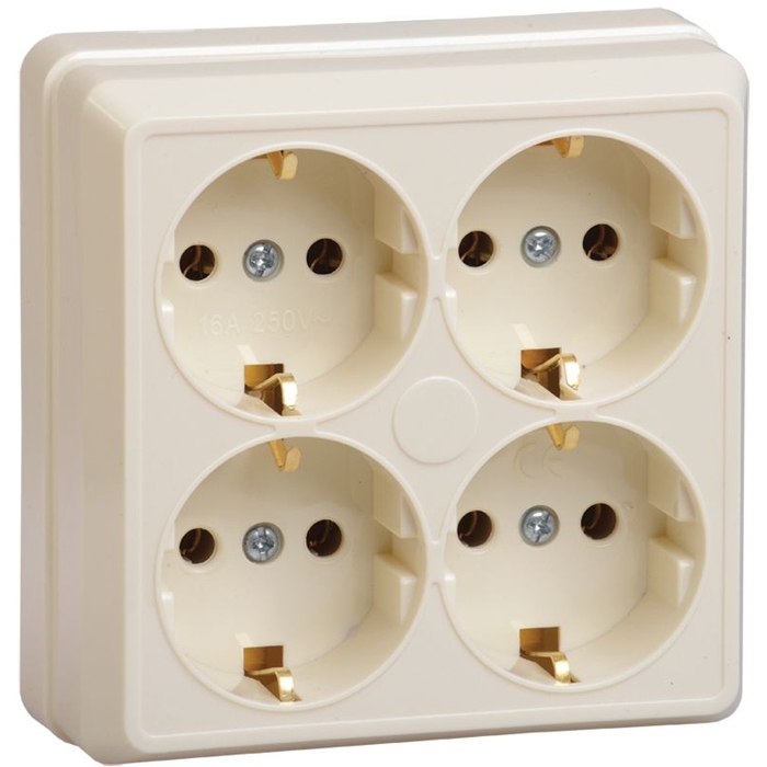Розетка 4-местная для открытой установки РС24-3-ОК с заземляющим контактом 16А ОКТАВА кремовый IEK